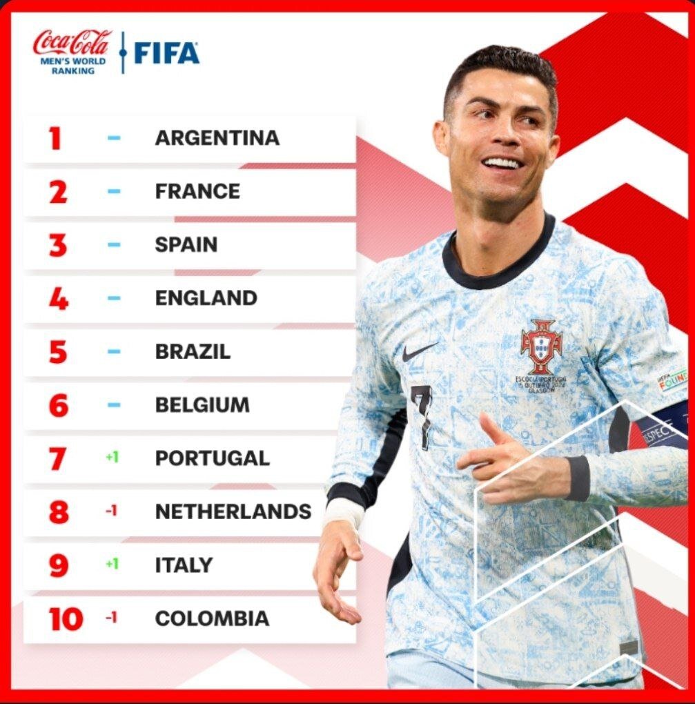 ردهبندی 10 تیم برتر رنکینگ فیفا: